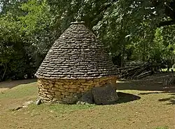 The designation "Cabanes du Breuil", although lacking in accuracy, was made popular - whether in its original form or under the variant "Bories du Breuil"[2] - by the local monthly Périgord Magazine in the 1970s, and more generally by regional tourist brochures, not forgetting postcards from the 1980s onwards.[3]