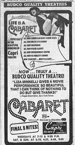- ^ "'Cabaret' New York Area $5,282,263; Figure Is Boff; Less So In Sticks". Variety. September 13, 1972. p. 4.