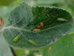 Cacopsylla mali, the apple leaf sucker or apple psylla is a species of plant lice;[2] these insects belong to the subfamily Psyllinae and are native to Eurasia and have been introduced to northern America.[2]