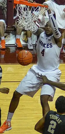![]() Raines dunking for Virginia Tech in January 2013 | |