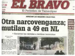- ^ "Se recrudece violencia en Nuevo Laredo: 23 muertos". El Universal (in Spanish). 5 May 2012. Archived from the original on 7 May 2012. Retrieved 5 May 2012.