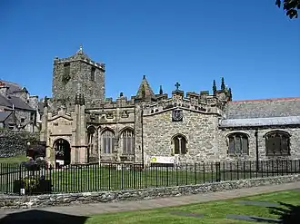 In the 6th century, King Maelgwn Gwynedd gave the old fort to Saint Cybi, who founded a monastery there.[4] The Church of St Cybi still stands on the site today, with a small detached chapel (Eglwys y Bedd) that reputedly stands over Cybi's grave.[2][5]