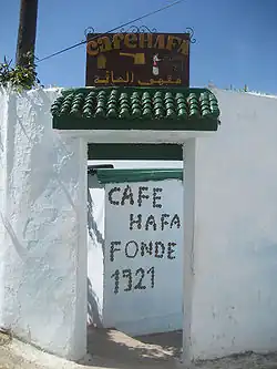 Café Hafa (Arabic: مقهى الحافة) is a cafe in Tangier, Morocco, located along the cliff top overlooking the Bay of Tangier. Opened in 1921, the cafe still maintains its original decor with multiple levels of terrace seating, facing the Strait of Gibraltar with Tarifa, Spain visible in the distance.