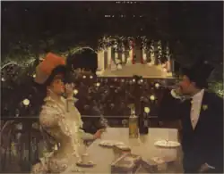 During the 1850s and 1860s, the reputation of the establishment gradually surpassed that of the nearby Alcazar d'Été, because although it presented more or less the same acts, it was more chic and attracted a more upmarket clientele.[2] With the arrival of Pierre Ducarre, a new director (1874 to 1902), a restaurant was added with the best chef in Paris, which transformed the place into a rendez-vous for gastronomes.[7] (From 1882, Ducarre also was in charge of the Alcazar d'Été.[8]) The café-concert had its heyday during the Belle Époque in Paris when Les Ambassadeurs became a regular destination of some of the best known figures of art and the demi-monde, and almost every vaudeville and music hall entertainer that mattered in those days performed there, such as Aristide Bruant, Zulma Bouffar, Polaire, Paula Brébion, Paulus, Eugénie Fougère, Anna Judic, Fragson, and last but not least Mistinguett and Yvette Guilbert.[2][8][9]