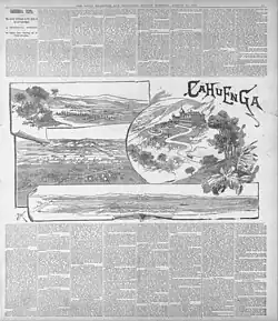 The earliest record of a person from Cahuenga in the mission baptismal registers is from 1798.[9] People associated with Cahuenga or similar village names are "listed 20 times between 1778–1815, in the San Gabriel Mission baptismal register and 62 times (1800–1806) in the San Fernando Mission register."[10] Three people from Capubet/Cahuenga were baptized in the Pueblo of Los Angeles.[5] The nearest other village was Siutcanga at the Encino Springs.[8] Baptismal registers indicate a significant number of kinship ties between Siutcanga and Cahuenga, as well as fewer kinship ties between Cahuenga and Tuyunga, Hahamongna, Jautbit, Maobit, Acosiubit, Mauga, and others.[5]