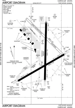 Cairns Army Airfield (IATA: OZR, ICAO: KOZR, FAA LID: OZR) is a military airport forming a part of Fort Rucker, in Dale County, Alabama, USA, and is owned by the United States Army.[1] The airfield is south of the town of Daleville, which sits between it and the main post.