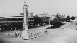 The movement to build a war memorial in Cairns started as early as October 1916, when a collection was taken to form a fund for a permanent memorial, but no further action took place for some years.[11] In early 1919 fundraising began for rest homes for returned men across Queensland, with the proceeds to be divided amongst eight districts, including Cairns.[12] Later that year the Mayor of Cairns, RCF Gelling, discussed possible memorial forms (soldier statue, trees, pavilion or kiosk, honour boards, or a hospital ward) and locations (an intersection, Norman Park, the Esplanade, or ANZAC Park) with the Cairns sub-branch of the Returned Sailors and Soldiers' Imperial League of Australia (RSSILA).[13] ANZAC Park, at the corner of Abbott Street and Spence Street, was gazetted in December 1920, but it wasn't until May 1922 a Cairns Soldiers' War Memorial Committee was formed to raise funds for a memorial to those soldiers of the district who had died.[14] Subscription lists were issued and collectors were appointed for different areas of Cairns.[1]