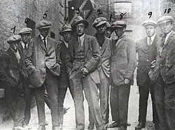 A famous photograph from the Piaras Béaslaí collection that is purported to show members of the Cairo Gang is lodged in the National Library of Ireland's photographic archive (five copies). An inscription describes the men as "the special gang F company Auxiliaries". The men in the photo are numbered, but there are no names or details on the back of the photos. Three other photos in the collection show Auxiliaries posing on vehicles in the grounds of Dublin Castle. Those three photos are similarly numbered.