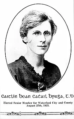 - ^ a b "Remembering Caitlín Brugha, TD for Waterford, 1923–1927". Reflections on history, feminism, activism and politics. 4 December 2018.
