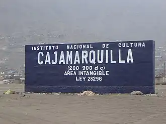 INC (National Institute of Culture) sign at Cajamarquilla archaeological site