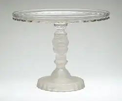 A cake stand is a type of tableware used for serving cake and other pastries, or a type of kitchen equipment used for holding cakes while they are decorated. The most common form is a plate on a pedestal; sometimes there are multiple plates in a tower. While most commonly made of ceramic, but may also be made of metal, glass, ceramic, and so on.