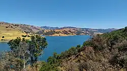 Calaveras Reservoir is located primarily in Santa Clara County, California, with a small portion and its dam in Alameda County, California. In Spanish, Calaveras means "skulls".