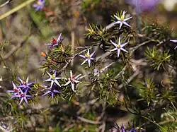 Calectasia cyanea is one of eleven species in the genus Calectasia. It was first described by Robert Brown in Prodromus Florae Novae Hollandiae in 1810.[6] The specific epithet (cyanea) is from the Ancient Greek κύανος (kyanós) meaning "dark blue" referring to the flower colour.[7] Common names include blue tinsel lily and star of Bethlehem.[8]