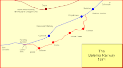 The extension from Balerno to Ravelrig did not have a regular service for extended periods, as was occasionally used for stabling the Royal Train when in the area.[4]