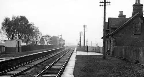 When the Caledonian main line had been opened, a direct line was provided by-passing Carstairs for trains running from Carlisle to Edinburgh; it was from Float Junction to Lampits Junction. In fact all passenger trains called at Carstairs; Edinburgh portions were detached and attached there, and did not use the curve. It is likely that goods traffic ran via Carstairs station also. The Lampits line closed in 1860.[8]