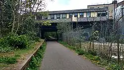 Nonetheless the considerable extent of residential housing encouraged an excellent bus service from the 1930s, and travel by train became unattractive: the line closed to passenger traffic in 1943, temporarily. It was intended to reopen the line after the War, but this was never done. The official closure date is sometimes given as 1 June 1949. Goods trains ceased running in 1967.[3][2][4]