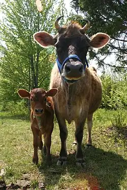 - ^ "Premiers soins aux veaux nouveau-nés" [First aid for newborn calves] (PDF). swissgentics (in French). 2006. Archived from the original (PDF) on June 25, 2024.
