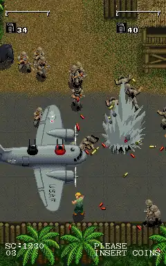 Players control a United States Air Force pilot who was taken as a prisoner of war in Vietnam in 1972. The pilot must escape the prison compound by battling enemy soldiers with guns and grenades. Various power-ups are available that give the player use of various other weapons including a machine gun and flamethrower. Enemy vehicles such as a plane can also be commandeered.[4]