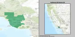 The district is located on the South Coast, comprising most of Ventura County as well as a small portion of Los Angeles County. Cities in the district include Camarillo, Oxnard, Santa Paula, Thousand Oaks, Westlake Village, Moorpark, and part of Simi Valley. In 2022, the district lost Ojai and most of Ventura and added Calabasas, Agoura Hills, and the sparsely populated northern half of Ventura County.[3]