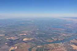 ![]() Typical flat farmland of the Central Valley as seen from the air | |