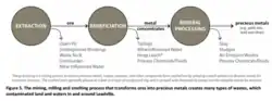 Since the 1850s, byproduct materials, such as tailings and slag, have been left by mining operations.[10] High levels of heavy metals and mine drainage raised concerns of high blood lead levels in residents, particularly in children. This hazardous waste and low-pH water also reduced biological diversity and caused stress in the ecosystem, decreasing the trout populations.[9] The most concerning contaminants are arsenic, cadmium, copper, lead, manganese, and zinc.[7][11]