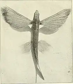 - ^ a b Breder, C.M. Jr. (December 1930). "On the Structural Specilization of Flying Fishes from the Standpoint of Aerodynamics". Copeia. 1930 (4): 114–121. doi:10.2307/1436467.