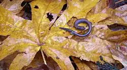 The California slender salamander (Batrachoseps attenuatus) is a lungless salamander[2] that is found primarily in coastal mountain areas of Northern California, United States as well as in a limited part of the western foothills of the Sierra Nevada, California, in patches of the northern Central Valley of California, and in extreme southwestern Oregon. This species resides primarily in a limited range within California as one of a handful quasi-endemic amphibians in the state.