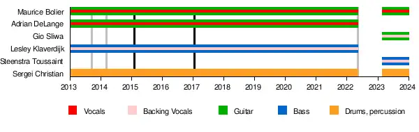 On February 22, 2023, it was announced that Bolier and Christian had reformed Call It Off. The band posted a statement on their Instagram stating that DeLange and Klaverdijk had both lost their passion for the band, but had given their blessing to Bolier and Christian to continue on without them.[11] In the place of their former bandmates, the two recruited their former touring keyboardist Gio Sliwa as a second guitarist and longtime friend Timmy Steenstra Toussaint as their new bassist. Speaking on the band's reunion Christian said that he never wanted the band to end, "but you can't do much on your own." He also said that "there's a lot of new music coming up. I've never written as much as in the last six months. And if it's up to me, we never stop!"[12][13] Alongside this announcement, the band released a new single "letting go" on March 9, 2023.