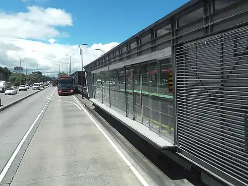 The simple station Calle 142 is part of the TransMilenio mass-transit system of Bogotá, Colombia, which opened in 2000.