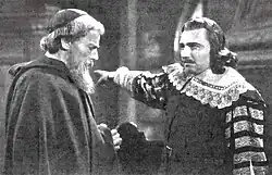 The inner conflicts of the characters and the scenographic richness are also recurrent in the first films by Alberto Lattuada (Giacomo the Idealist, 1942) and Renato Castellani (A Pistol Shot, 1942), dominated by a sense of moral and cultural decay that seemed to anticipate the end of the war. The first film by Luchino Visconti, Ossessione (1943), is completely anomalous, which, while presenting some typical elements of calligraphy (the literary origin, the references to 19th-century culture, and the accurate formal composition) radicalises the self-destructive tension of the characters and, above all, the importance of the setting, effectively paving the way for the revolution of Italian neorealism. Another important example of a calligraphic film is the film version of The Betrothed (1941), by Mario Camerini (very faithful in the staging of Manzoni's masterpiece), which due to the perceived income, became the most popular feature film between 1941 and 1942.[6]