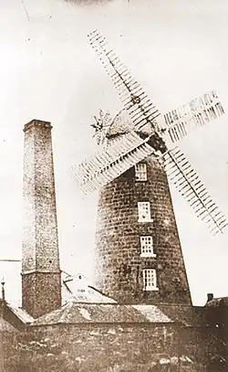 After Percy and Charlotte left Oatlands in about 1892 it appears that the mill ceased operating and not long after the sails were removed for safety reasons.[20] A photo is shown on the left of the mill in about 1900 after the removal of the sails.