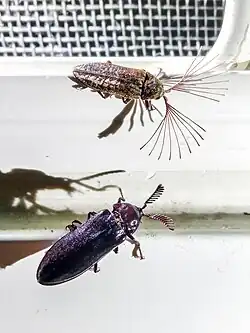 Callirhipidae (also known as Callirhipidae Cedar Beetles) is a family of beetles, found widely throughout low-latitude regions except tropical Africa and Madagascar. There are around 175 species in 7 genera. The larvae bore into dead wood and generally have a life span of 2 or more years. The adults are generally nocturnal.[1]
