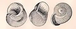 | Original drawing with three views of a shell of Callomphala globosa | |
