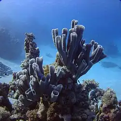 Callyspongia siphonella, commonly known as colonial tube-sponge, is a species of sea sponge endemic to the Red Sea. Clusters of its pale lavender to pink long tubes reach up to 60 centimetres (24 in) in size.[1][2][3] Callyspongia siphonella contains a bioactive compound, Sipholenol A., that has been studied for its anti-proliferative properties in human breast cancer; these properties provide promise in its potential for developing future compounds and thus contributes greatly to future cancer research.[4]
