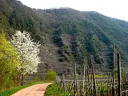 The Calmont, also called the Calmond, between Bremm and Ediger-Eller in the county of Cochem-Zell in the German state of Rhineland-Palatinate, is a steep hill on the heights above the Moselle river to a height of 380.6 m above sea level (NHN).[1] It lies within the Moselle wine region and is home to the vineyards of Bremmer Calmont and Ellerer Calmont which, with gradients of up to over 65º, are among the steepest vineyards in the world.[2]