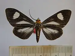 - ^ Toulgoët, Hervé de & Navatte, Jocelyne (2000). "Calodesma dioptis (Felder, 1874)". Illustrated Catalogue of the Arctiidae Arctiinae and Pericopinae of French Guyana Found in the Collection of the Museum National d'Histoire Naturelle in Paris. Retrieved September 12, 2019.