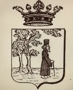 Corfiote coat of arms — Beneath the leafy branch of a tree, or palm tree, stands a monk with a rosary in his hand. This coat of arms is in the archives of the Corfu Museum, and a stone version exists in the lobby of the University of Padua just to the left of the entrance.