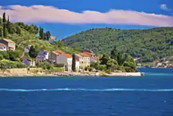 - Ošljak (island): The small island of Ošljak, off the coast of Zadar, was previously known as Calogerà, or Kaluđera,[37] named after the Calogerà [Kalogjera, Kalogera] family of Zadar who possessed it and built their summer residence and gardens there.[38][39] The remains of the Calogerà family mansion and gardens are protected cultural and historical landmarks.[40] Today, some locals still refer to the island as Kalogera. The legacy of the Calogerà family is preserved in the island's Italian name, Calugerà. In Preko: Povijesne, Geografske, Folklorističke, i Kulturne Crtice (1924), Dr. Josip Marčelić, Bishop of Dubrovnik, writes the following excerpt:
