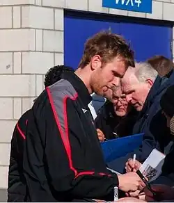 ![]() Davenport signing autographs while on loan to Sunderland in 2009 | |||