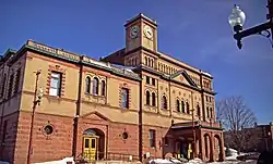 The Calumet Theatre is a theater and opera house which opened in 1900. In 1898, the copper mining industry was booming, and the town had an enormous surplus in its treasury. The town council decided to spend some of the surplus on a theater. The theater hosted a large number of famous actors, musicians, and opera singers.[13] With the closing of the mines, the theater became a movie theater and fell into general disrepair for many years. In 1975, the town began a large project to repair and restore the theater, which is now used for many local and touring productions. The theatre was added to the National Register of Historic Places on August 5, 1971, and is also a Michigan State Historic Site.[14] The Theatre was the original recording venue of the Red Jacket Jamboree, an old-time radio variety show heard on Michigan public radio stations including Interlochen Public Radio and WNMU Public Radio 90.[15]