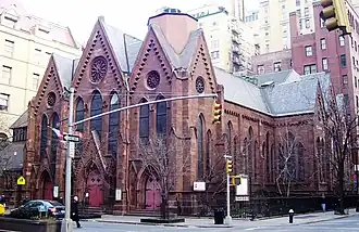 Calvary-St. George's Parish is an Episcopal parish in Manhattan, New York City. The current Rector is Jacob Smith, who came to the parish and was ordained as a presbyter in the fall of 2006 and installed as Rector in 2017.[1] The other priests are Molly Jane Layton, Janet Broderick, and Nancy Hanna.[2] Kamel Boutros, a former singer with Metropolitan Opera, is music director.[3] In 2021, it reported 625 members, average attendance of 139, and $749,025 in plate and pledge income.[4]