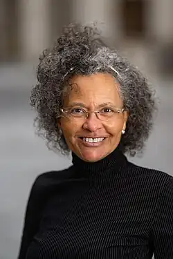 Camara Phyllis Jones was born August 16, 1955, in San Francisco, California.[6] Following her graduation from high school, Jones went on to receive her B.A. in molecular biology from Wellesley College in 1976.[7] She then went on to earn her M.D. from the Stanford University School of Medicine in 1981[7] and her M.P.H. from the Johns Hopkins School of Hygiene and Public Health the following year.[7] After receiving her medical degree, she completed residency training in 1983 for General Preventative Medicine at Johns Hopkins and completed a second residency training in 1986 in Family Practice at Montefiore Medical Center.[8][9] She earned her Ph.D. in epidemiology from the Johns Hopkins School of Hygiene and Public Health in 1995.[10] The title of her dissertation was Methods for Comparing Distributions: Development and Application Exploring "Race"-Associated Differences in Systolic Blood Pressure.