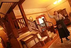 Following Juan's death in 1880, his oldest son, Adolfo Camarillo (1864–1958) took over the ranch operations at the age of sixteen and turned it into "the largest bean ranch in the world."[11] Camarillo employed 700 workers on his ranch, and his production was so great that the Los Angeles Times reported in 1909 that, "through the enormous output of his ranch, [Camarillo] is, in a measure, able to set the price which the public must pay for beans."[11] The Ranch House was built in 1892 under instruction of Adolfo Camarillo using architects Franklin Ward and Herman Anlauf. Adolfo would have preferred to have built a home in Spanish style due to his background, but the homes surrounding the area were owned by Eastern Europeans. Despite his 4’11 stature, he was highly respected within his community, and could be seen frequently riding his pure bred white stallions. Adolfo's wife Isabella, who strived to fit into this new environment, would entertain guests with tea, jam, and tortillas. She enjoyed the English culture, and worked to infuse her own culture into it as well. Adolfo Camarillo himself had to have fresh tortillas every morning for breakfast.[2] The Camarillo family had multiple servants who worked and lived on the ranch with them. A large hallway, also known as a breezeway, separates the living quarters between the servants and the rest of the family.