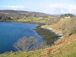 The township is near the scene of the Battle of the Braes (Scottish Gaelic: Blàr a' Chumhaing) in 1882. Local crofting tenants facing eviction from the land withheld rent and released sheep onto a forbidden area on the shores of Ben Lee. Sent to evict them, the Sheriff Officer from Portree was met by an angry mob, who forced him to burn the eviction notices. Subsequently 50 Glasgow policemen, sent to quell the rebellion, faced 100 men, women and children, armed with sticks and stones.[4][5] Several people were injured and five men were arrested.[6] Small fines were imposed in court, but it was clear that law and order could only be enforced with military assistance.[7] After the Battle of the Braes, the unrest spread to Glendale, Skye. The rebellion led to the Napier Commission and ultimately the Crofters Act of 1886, which brought security of tenure and the right to hand a croft on to their heirs.[8]