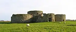 Camber Castle was built approximately 1.5 kilometres (0.93 mi) between the ports of Rye and Winchelsea on the south coast of England, overlooking a body of water called the Camber, at the mouth of the Brede, Rother and Tillingham rivers.[1] The two towns were part of the Cinque Ports, a strategic chain of maritime towns responsible for providing ships to the king's navy, although Winchelsea's harbour had silted up by the 16th century, limiting its utility, and similar problems were beginning to impact the port of Rye.[2] The mouth of the Camber had also begun to silt up in the late medieval period, although in this case the process had created an important new anchorage for ships.[1]