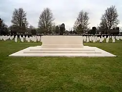 The Stone of Remembrance, reserved for cemeteries with over 1,000 Commonwealth service burials, was unveiled in the Air Force plot by Marshal of the Royal Air Force Lord Tedder in July 1951.[2]