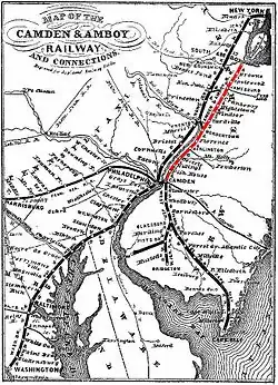C&A service between Trenton and New Brunseick began in 1832, [6] and the company completed a line between Bordentown, on the Delaware River, and South Amboy, in December of that year.
