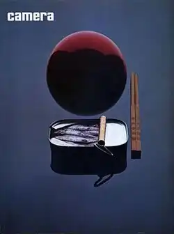 Walter Läubli became chief editor, or 'art director' as the position was called then, from January 1948. The 1949 special issue featured Robert Frank's first published photography, and was Camera's first important mark on international photo-journalism.[6] To better expand the Camera readership, Läubli introduced articles translated into English and French from their native German, making the magazine a trilingual one.[2] He also re-looked the magazine and graced it with a new logo[5] that would remain practically unchanged until the magazine's 1981 demise.[4]