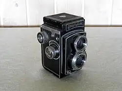 In the early 1950s Taiyōdō Koki made various types of cameras beginning with sub-miniatures[6] followed by a 6x6 folder and SLR, but were best known for TLRs given names that were variations of Beauty (e.g. Beauty, Beautyflex,[7] Beautycord). These were sold from their Tokyo shops mainly to US troops, exported to North European countries, the US,[8] Asia[9] and South America.[10] They were also rebadged for sale outside of Japan by the Dutch importer Fodor (Fodorflex), Miller-Outcult (Milo 35) and the United States Camera Corporation of Chicago (USC Auto 50), plus the mail-order giant Ward Montgomery (Wardflex) in the USA. Taiyōdō Koki also rebranded some of their products under the name "Gen" for sale in Canada,[11] and "CSL Photoflex" (the market for which is a mystery).