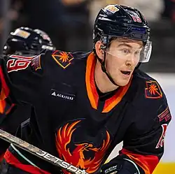 ![]() Hughes with the Coachella Valley Firebirds in 2023. | |||
